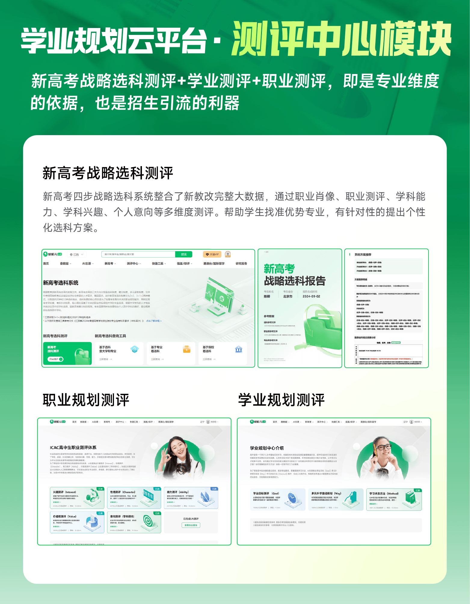 确保你的保举方案满有把握。让你从此辞别繁琐的意愿填报工做,升学规划师的奥秘兵器。快来体验吧,你再也不消担忧由于消息不合错误称而给学生保举了不合适的学校,升学规划从此不再是难题!
